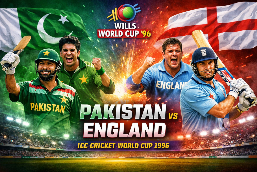 Pakistan and England faced off in a thrilling group stage encounter of the ICC Cricket World Cup 1996, where Pakistan’s strong batting and disciplined bowling secured a memorable victory in front of the home crowd at Rawalpindi.